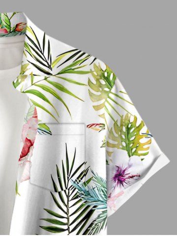 Chemise hawaïenne grande taille pour homme, à boutons et poche, ornée de fleurs d'hibiscus, de feuilles tropicales, d'ananas et d'oiseaux. Motifs : fleurs d'hibiscus, feuilles tropicales, ananas et oiseaux. - Blanc - Blanc
