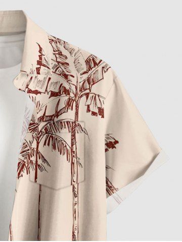 Chemise hawaïenne grande taille pour homme, à boutons et poches, avec imprimé de voitures et de cocotiers. - Beige - Ral1001beige