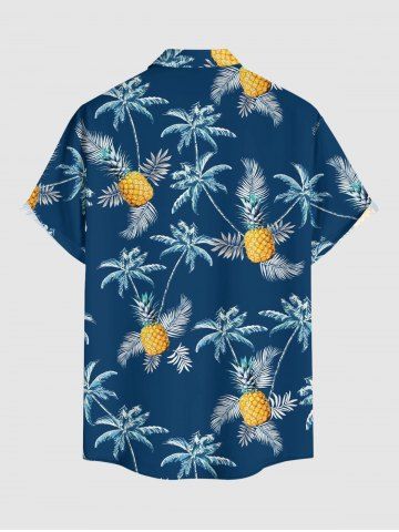 Chemise hawaïenne grande taille pour homme, à boutons et poches, imprimé ananas et cocotiers. - Bleu Profond - Xl