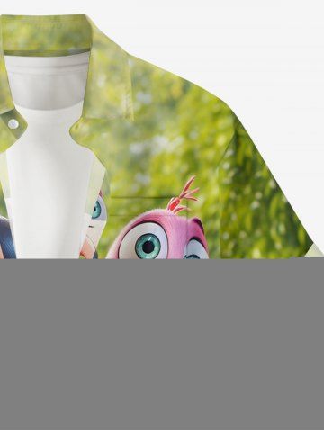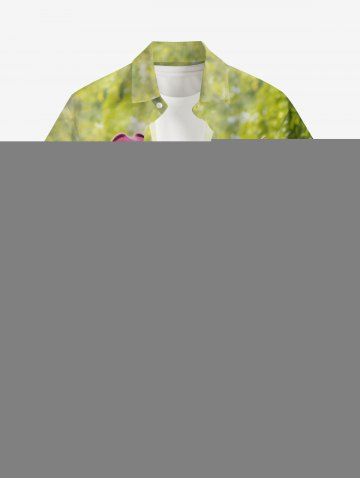 Chemise hawaïenne grande taille pour homme, à boutons et poches, imprimé flamants roses. - Vert Jade - S