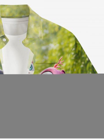 Chemise hawaïenne grande taille pour homme, à boutons et poches, imprimé flamants roses. - Vert Jade - L