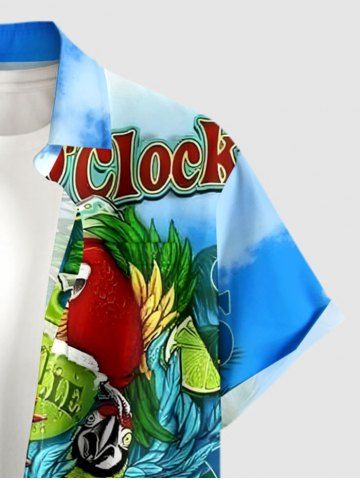 Chemise hawaïenne grande taille pour homme, à boutons et poches, ornée de perroquets et de feuilles tropicales, avec jus de fruits et motifs de feuilles. Motifs tropicaux. Imprimé fruits et perroquets. Grande taille. Modèle hawaïen avec poches et boutons. - Bleu - Bleu