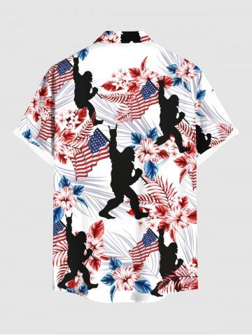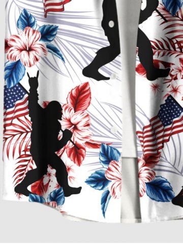 Chemise hawaïenne grande taille pour homme, à fleurs tropicales, drapeau américain, imprimé gorille, boutons et poche. Motif patriotique. Modèles américains. - Blanc - Blanc
