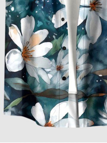 Chemise hawaïenne grande taille pour homme, à imprimé aquarelle de fleurs et de feuilles, boutons et poche. - Paon Bleu - 4xl