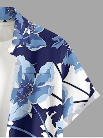 Chemise hawaïenne grande taille pour homme, à imprimé aquarelle de fleurs et de feuilles, boutons et poche. - Bleu - Bleu