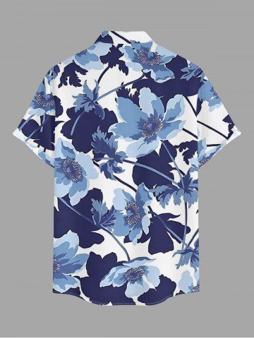 Chemise hawaïenne grande taille pour homme, à imprimé aquarelle de fleurs et de feuilles, boutons et poche. - Bleu - Bleu