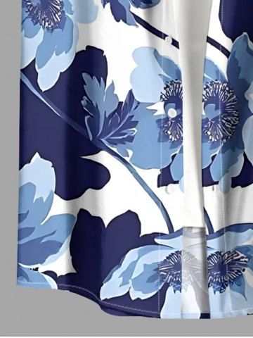 Chemise hawaïenne grande taille pour homme, à imprimé aquarelle de fleurs et de feuilles, boutons et poche. - Bleu - Bleu