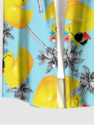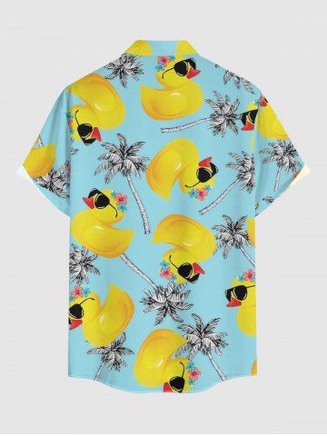 Chemise hawaïenne grande taille pour homme, à imprimé canard et cocotier, boutons et poche. - Turquoise - Turquoise