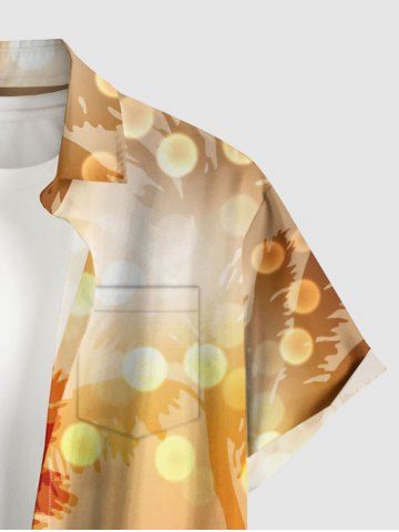 Chemise hawaïenne grande taille pour homme, à imprimé cocotiers et pois lumineux, boutons et poche. - Orange - Orange