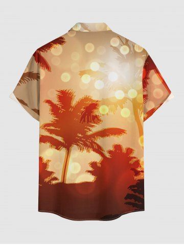Chemise à Manches Courts> Chemise hawaïenne grande taille pour homme, à imprimé cocotiers et pois lumineux, boutons et poche.