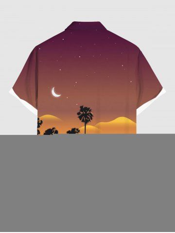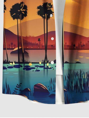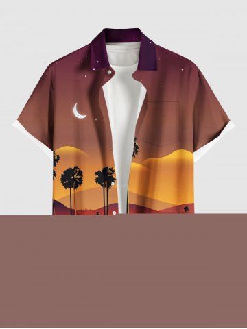 Chemise à Manches Courts> Chemise hawaïenne grande taille pour homme, à imprimé cocotiers, oiseaux et lune, boutons et poche.