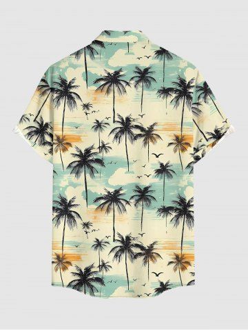 Chemise à Manches Courts> Chemise hawaïenne grande taille pour homme, à imprimé cocotiers, oiseaux et nuages, boutons et poche.