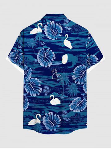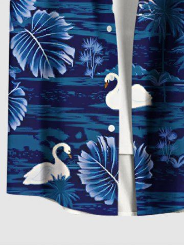Chemise hawaïenne grande taille pour homme, à imprimé cygne et feuilles de cocotier, boutons et poche. - Bleu Profond - Xl