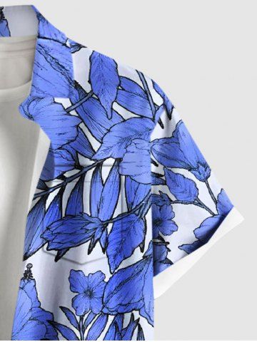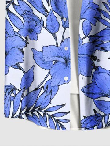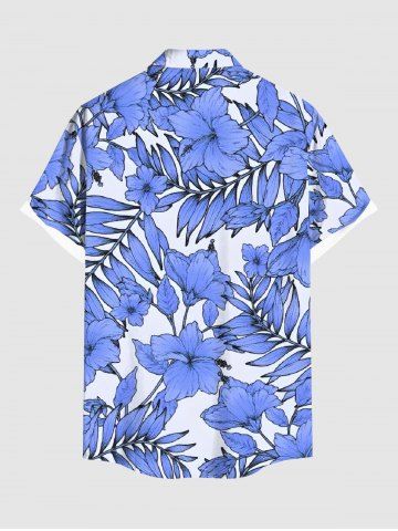 Chemise hawaïenne grande taille pour homme, à imprimé de fleurs d'hibiscus et de feuilles, avec boutons et poche. - Bleu - Bleu