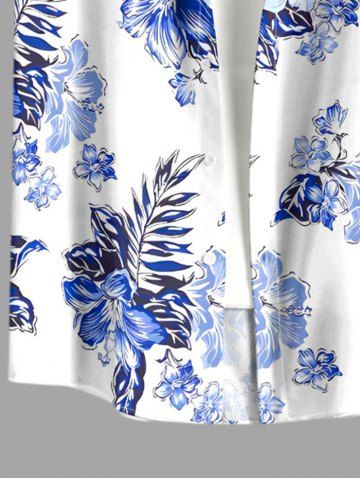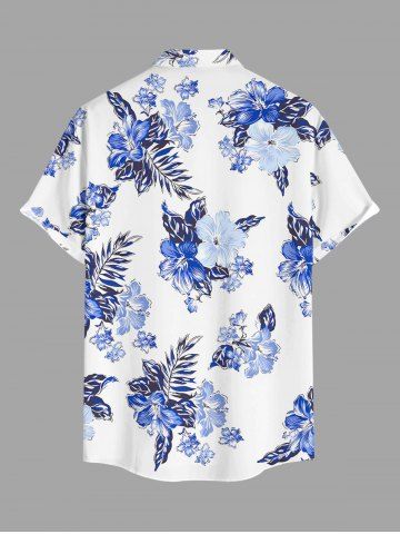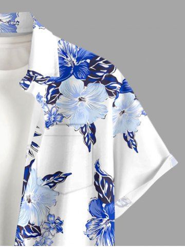 Chemise hawaïenne grande taille pour homme, à imprimé de fleurs d'hibiscus et de feuilles, avec boutons et poche. - Blanc - Blanc