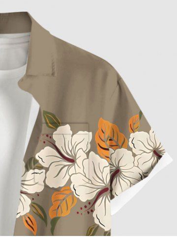 Chemise à Manches Courts > Chemise hawaïenne grande taille pour homme, à imprimé de fleurs d'hibiscus et de feuilles, avec boutons et poche.