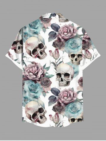 Chemise à Manches Courts > Chemise hawaïenne grande taille pour homme, à imprimé de têtes de mort et de roses, avec boutons et poche.