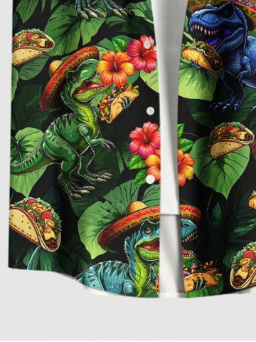 Chemise à Manches Courts> Chemise hawaïenne grande taille pour homme, à imprimé dinosaures, fleurs et feuilles, boutons et poche.