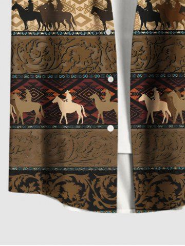Chemise hawaïenne grande taille pour homme, à imprimé ethnique cheval et floral, avec boutons et poche. - Café Profond - 2xl
