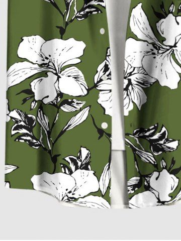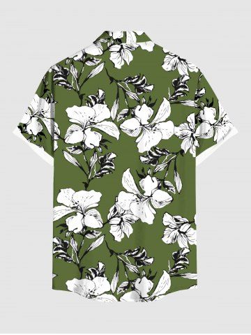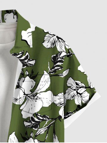Chemise hawaïenne grande taille pour homme, à imprimé feuilles d'hibiscus, boutons et poche. - Vert - Vert