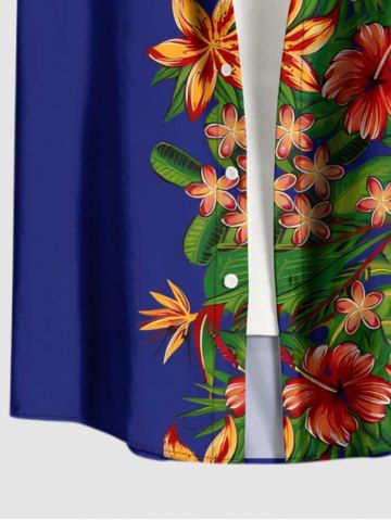 Chemise à Manches Courts> Chemise hawaïenne grande taille pour homme, à imprimé feuilles d'hibiscus, boutons et poche.