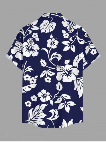 Chemise hawaïenne grande taille pour homme, à imprimé feuilles d'hibiscus, boutons et poche. - Bleu - Bleu