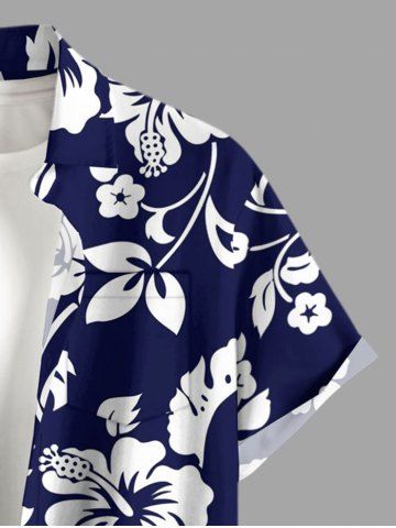 Chemise à Manches Courts> Chemise hawaïenne grande taille pour homme, à imprimé feuilles d'hibiscus, boutons et poche.
