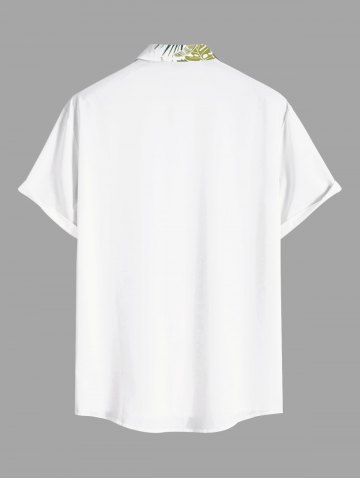 Chemise hawaïenne grande taille pour homme, à imprimé feuilles tropicales et fleurs d'hibiscus, boutons et poche. - Blanc - Blanc