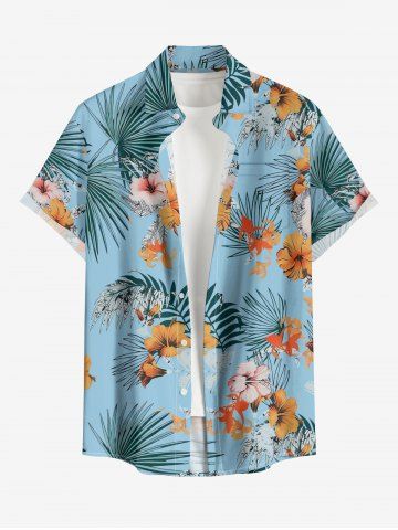 Chemise à Manches Courts> Chemise hawaïenne grande taille pour homme, à imprimé feuilles tropicales et fleurs d'hibiscus, boutons et poche.