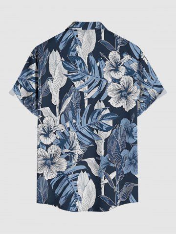 Chemise hawaïenne grande taille pour homme, à imprimé feuilles tropicales et fleurs d'hibiscus, boutons et poche. - Cadetblue - 6xl