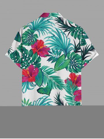 Chemise à Manches Courts> Chemise hawaïenne grande taille pour homme, à imprimé feuilles tropicales et fleurs d'hibiscus, boutons et poche.