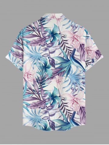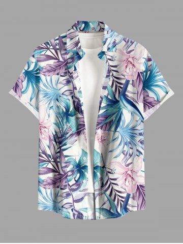 Chemise à Manches Courts > Chemise hawaïenne grande taille pour homme, à imprimé feuilles tropicales et fleurs d'hibiscus, boutons et poche.