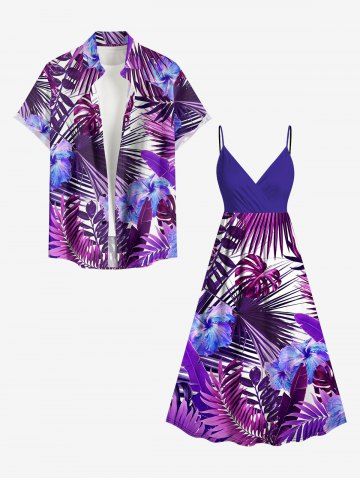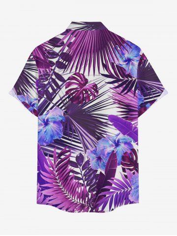 Chemise à Manches Courts> Chemise hawaïenne grande taille pour homme, à imprimé feuilles tropicales et fleurs d'hibiscus, boutons et poche.