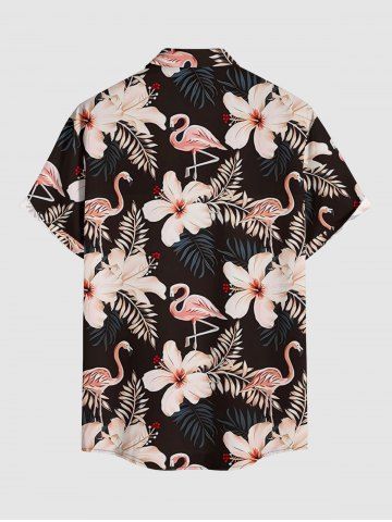 Chemise hawaïenne grande taille pour homme, à imprimé flamants roses et hibiscus, feuilles tropicales, boutons et poche. - Noir - Noir