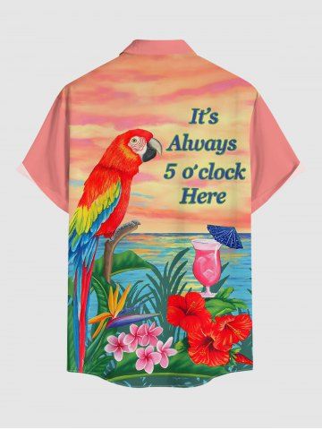 Chemise hawaïenne grande taille pour homme, à imprimé fleurs d'hibiscus et jus de fruits, avec boutons et poche. Motif perroquet. Imprimé fleurs et feuilles d'hibiscus. - Rose - Rose