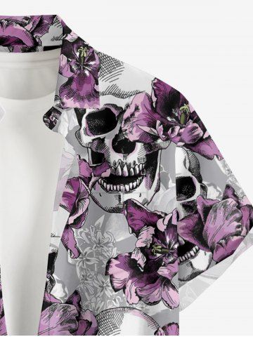 Chemise à Manches Courts> Chemise hawaïenne grande taille pour homme, à imprimé fleurs et têtes de mort, boutons et poche.
