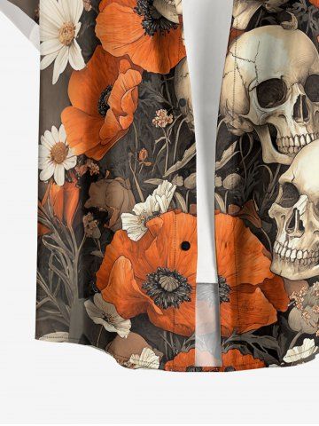 Chemise à Manches Courts> Chemise hawaïenne grande taille pour homme, à imprimé fleurs et têtes de mort, boutons et poche.