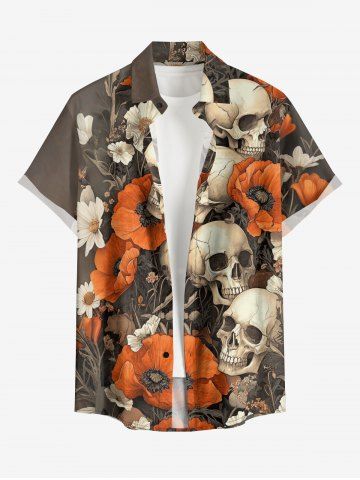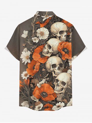 Chemise hawaïenne grande taille pour homme, à imprimé fleurs et têtes de mort, boutons et poche. - Café Profond - 4xl