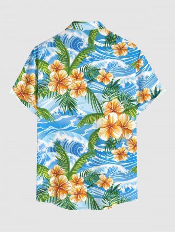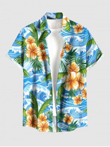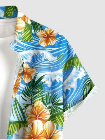 Chemise hawaïenne grande taille pour homme, à imprimé fleurs, feuilles et vagues, avec boutons et poche. - Bleu Ciel - Bleu Ciel