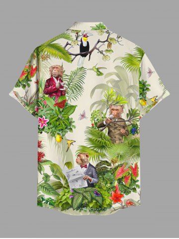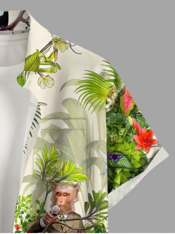 Chemise à Manches Courts > Chemise hawaïenne grande taille pour homme, à imprimé fleurs tropicales et feuilles, boutons et poche, avec singes et motifs de singes.