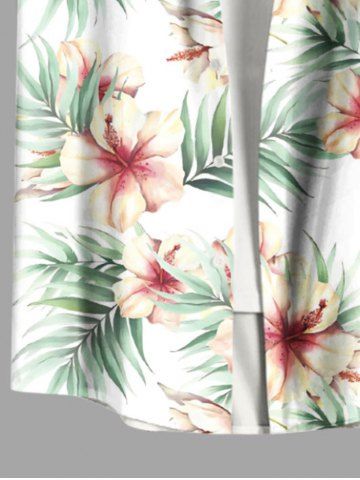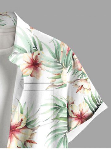 Chemise hawaïenne grande taille pour homme, à imprimé floral d'hibiscus et feuilles tropicales, avec boutons et poche. - Blanc - Blanc