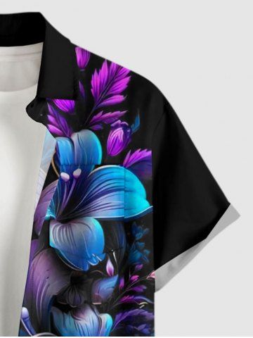 Chemise hawaïenne grande taille pour homme, à imprimé floral et feuilles ombré, boutons et poche. - Noir - Noir