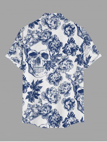 Chemise hawaïenne grande taille pour homme, à imprimé floral et tête de mort, boutons et poche, style couronne. - Bleu Profond - 2xl