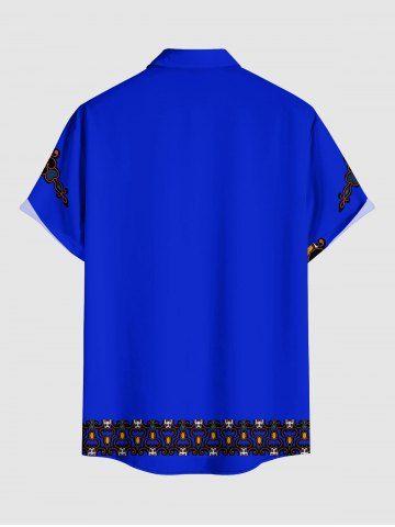 Chemise hawaïenne grande taille pour homme, à imprimé floral ethnique miroir, boutons et poche. - Bleu - Bleu