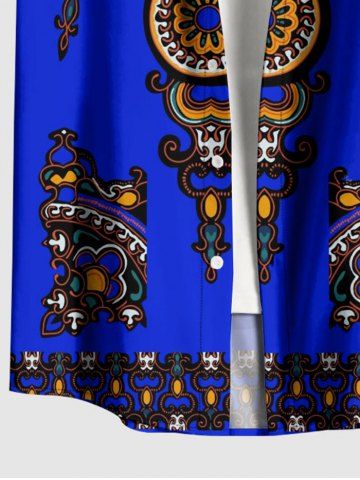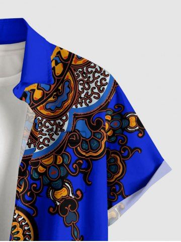 Chemise hawaïenne grande taille pour homme, à imprimé floral ethnique miroir, boutons et poche. - Bleu - Bleu
