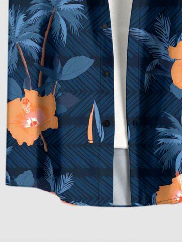 Chemise hawaïenne grande taille pour homme, à imprimé floral hibiscus et cocotiers, avec poches et boutons. - Bleu Profond - L