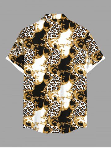 Chemise à Manches Courts> Chemise hawaïenne grande taille pour homme, à imprimé floral léopard colorblock, boutons et poche, style homme.