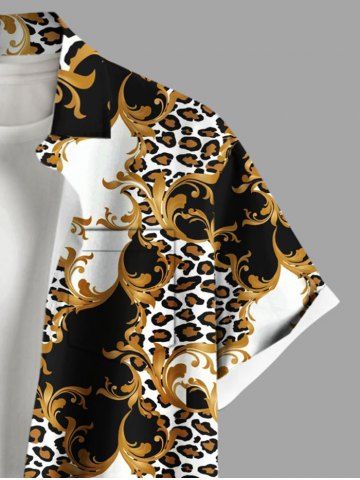 Chemise à Manches Courts > Chemise hawaïenne grande taille pour homme, à imprimé floral léopard colorblock, boutons et poche, style homme.