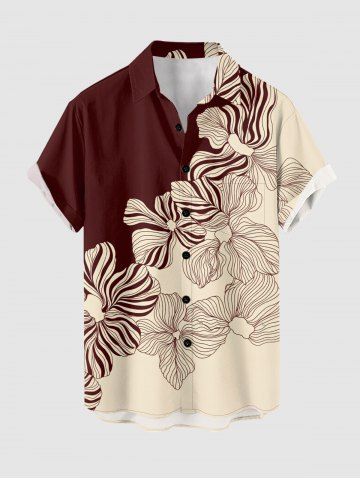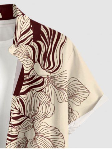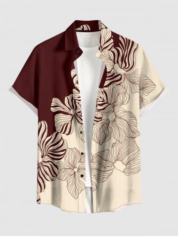 Chemise hawaïenne grande taille pour homme, à imprimé floral tropical colorblock, boutons et poche. - Café Lumière - 2xl