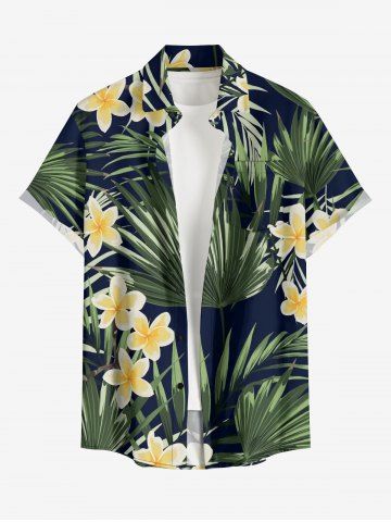 Chemise à Manches Courts> Chemise hawaïenne grande taille pour homme, à imprimé floral tropical et feuilles, avec boutons et poche.